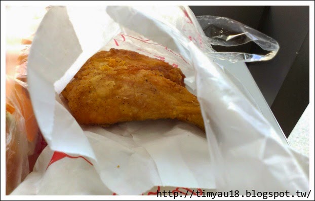 | 偷看一下雞腿的樣子,炸得很金黃很香,還滿大支的喔! |