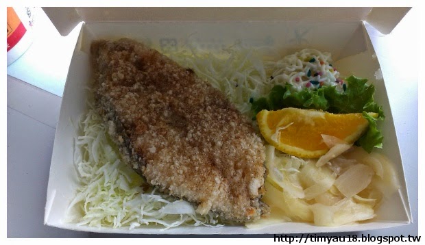 | 鮭魚排套餐(內),只有一些生菜沙拉。 老闆一直問我要不要換成便當才會有青菜...給大家看看囉! |